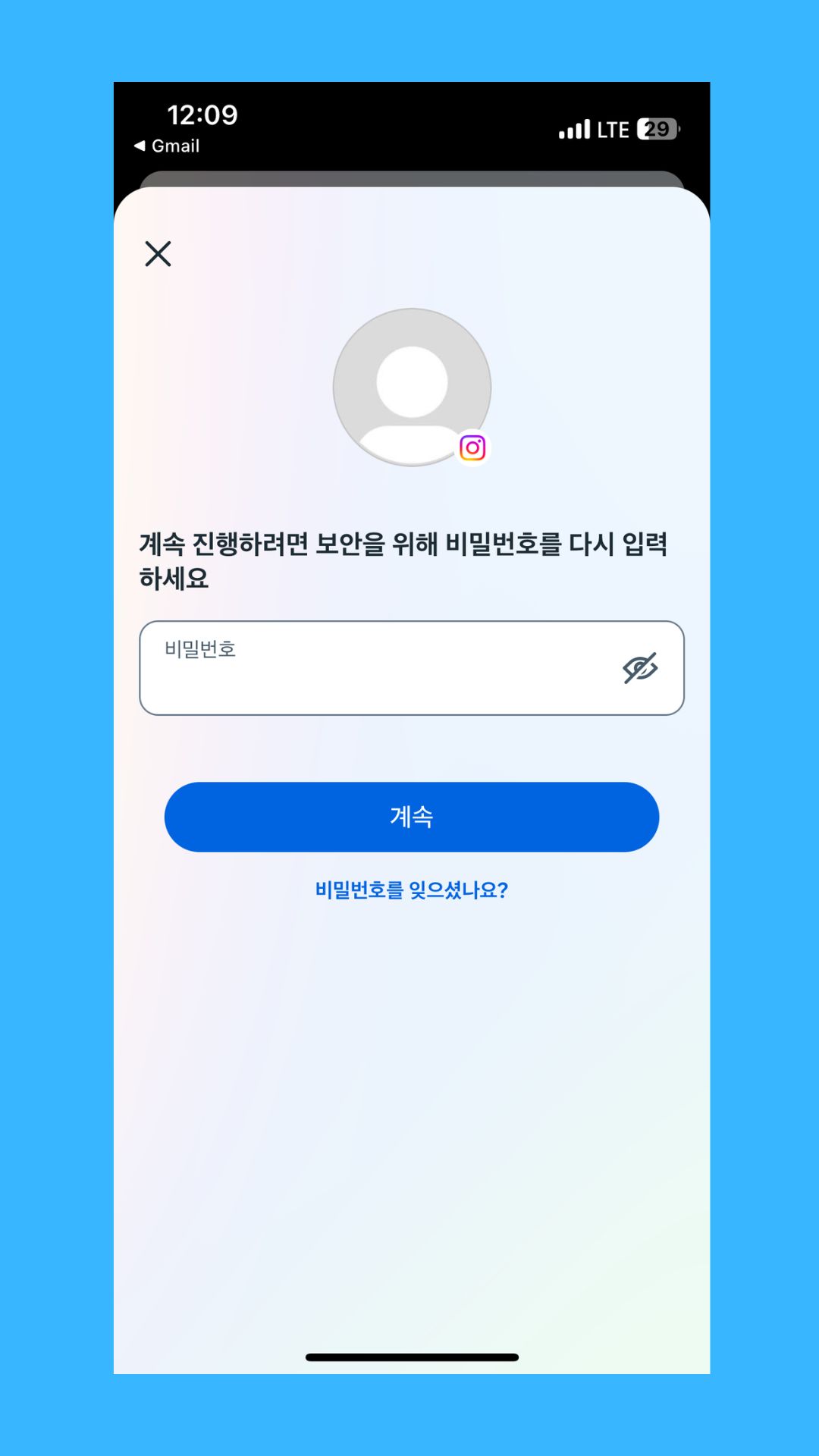 (만약 비밀번호 입력 화면이 나오면 입력하고 진행하세요. 인스타그램의 보안때문입니다.)