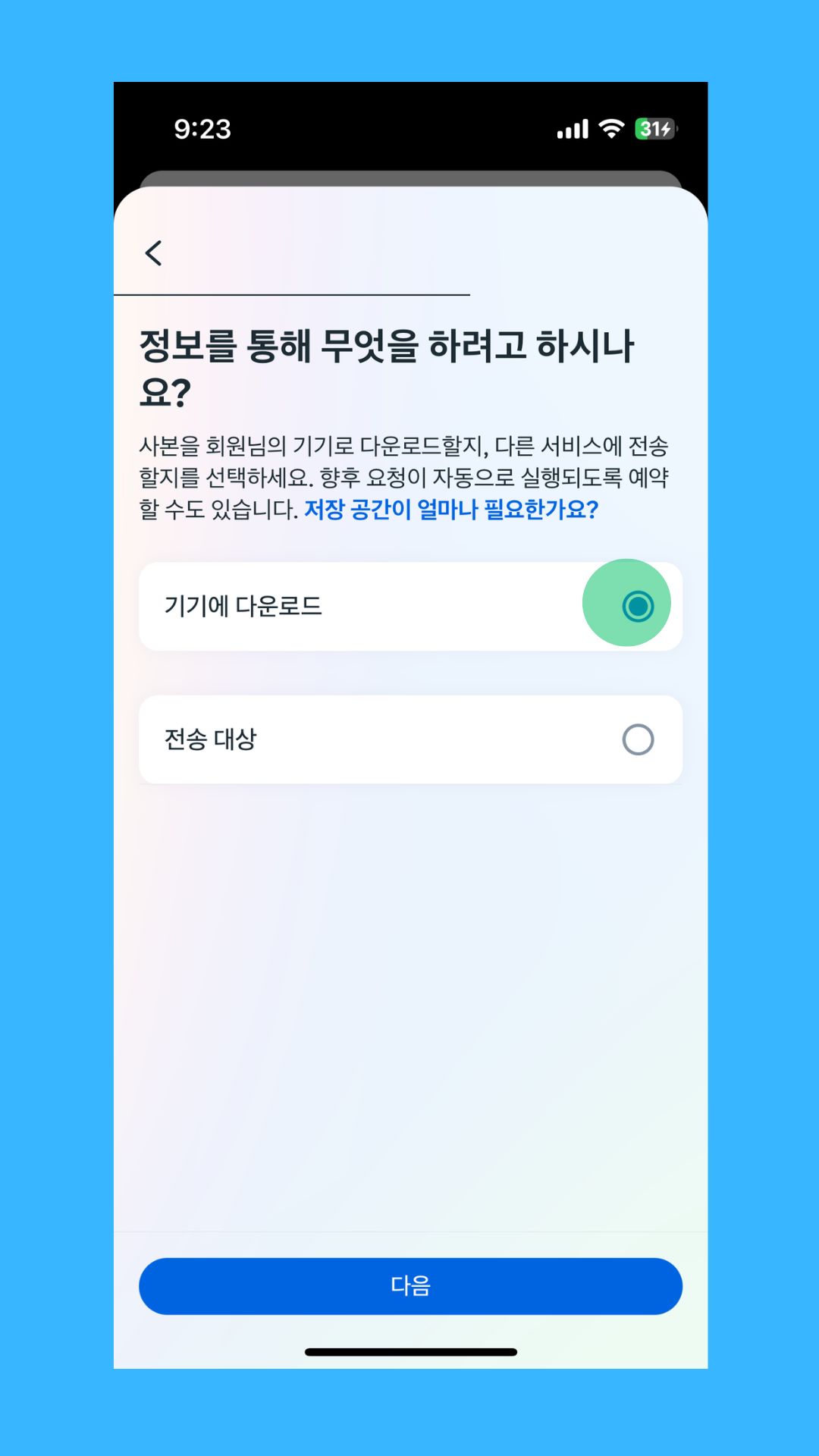 다운로드 창이 나타나면 기기에 다운로드 하세요.